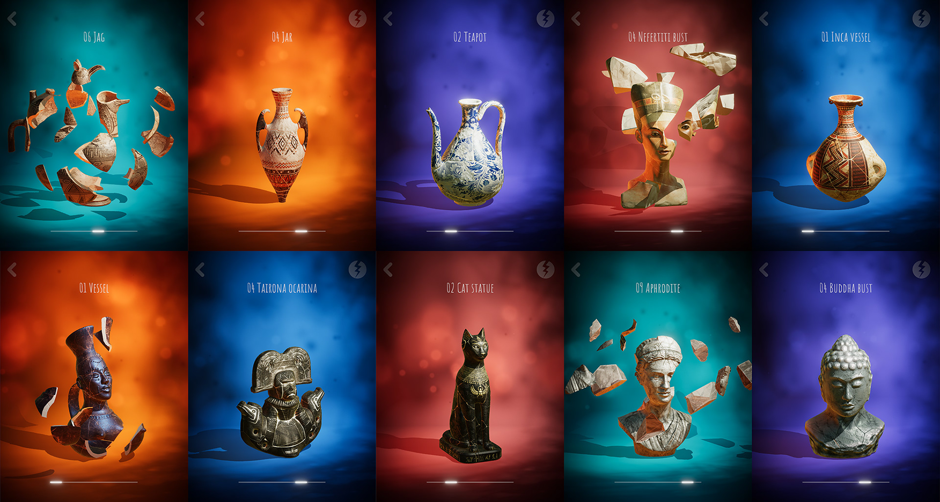 Artifact is an imagination stirring 3D puzzle where you move and rotate objects to assemble shattered ceramic works. Inspired by kintsugi, the Japanese art of repairing broken pottery.